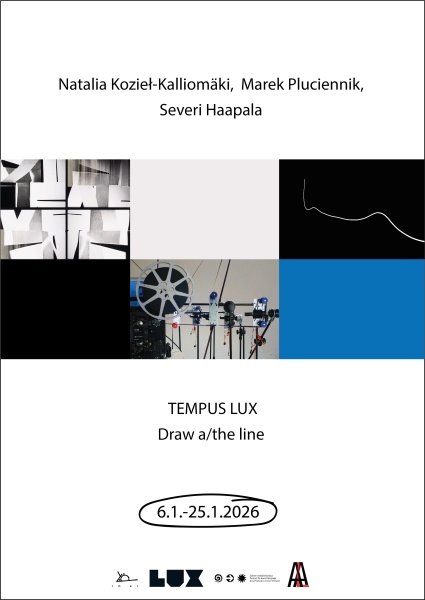 We kick off with a Helsinki Lux–dedicated exhibition featuring Natalia Kozieł-Kalliomäki, Marek Pluciennik and Severi Haapala. Their works, Tempus Lux and Draw a/the Line, honour the power of analogue film, the beam of projected light, and light as kinetic art.